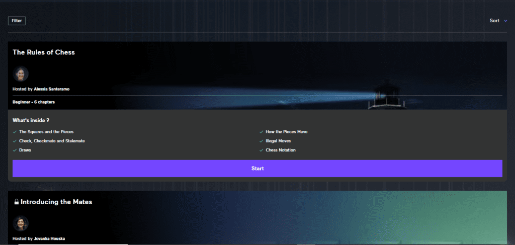 • The Structured Learner: Maybe. KasparovChess is excellent for beginners who find other websites overwhelming. The content is categorized by level of play, making it easier to determine where to begin. For intermediate players, websites like Chessable might offer more value.